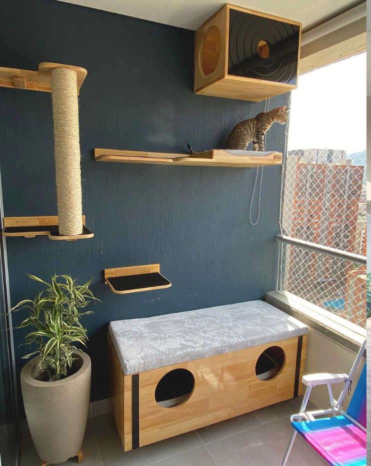 Nuestro Catification cumple con todo lo que nuestro gaticliente necesita para hallar altura, gastar su energía, esforzarse para conseguir su alimento y ser un gatito feliz.